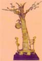The award trophy, given to each winner is a beautifully handcrafted piece of art. It shows a man atop a SULPHI tree ( a kind of palm found in Bastar), whose sap has mild intoxication properties. It represents human's eternal quest of knowledge, itch to explore, will to achieve and wish to conquer new heights, frontiers and horizons. It has been especially designed for us by master craftman Jaidev Baghel, the Bastar-bon tribal artist of international fame. Recently, Raipur University has conferred upon the artist the honorary degree of D.Lit.